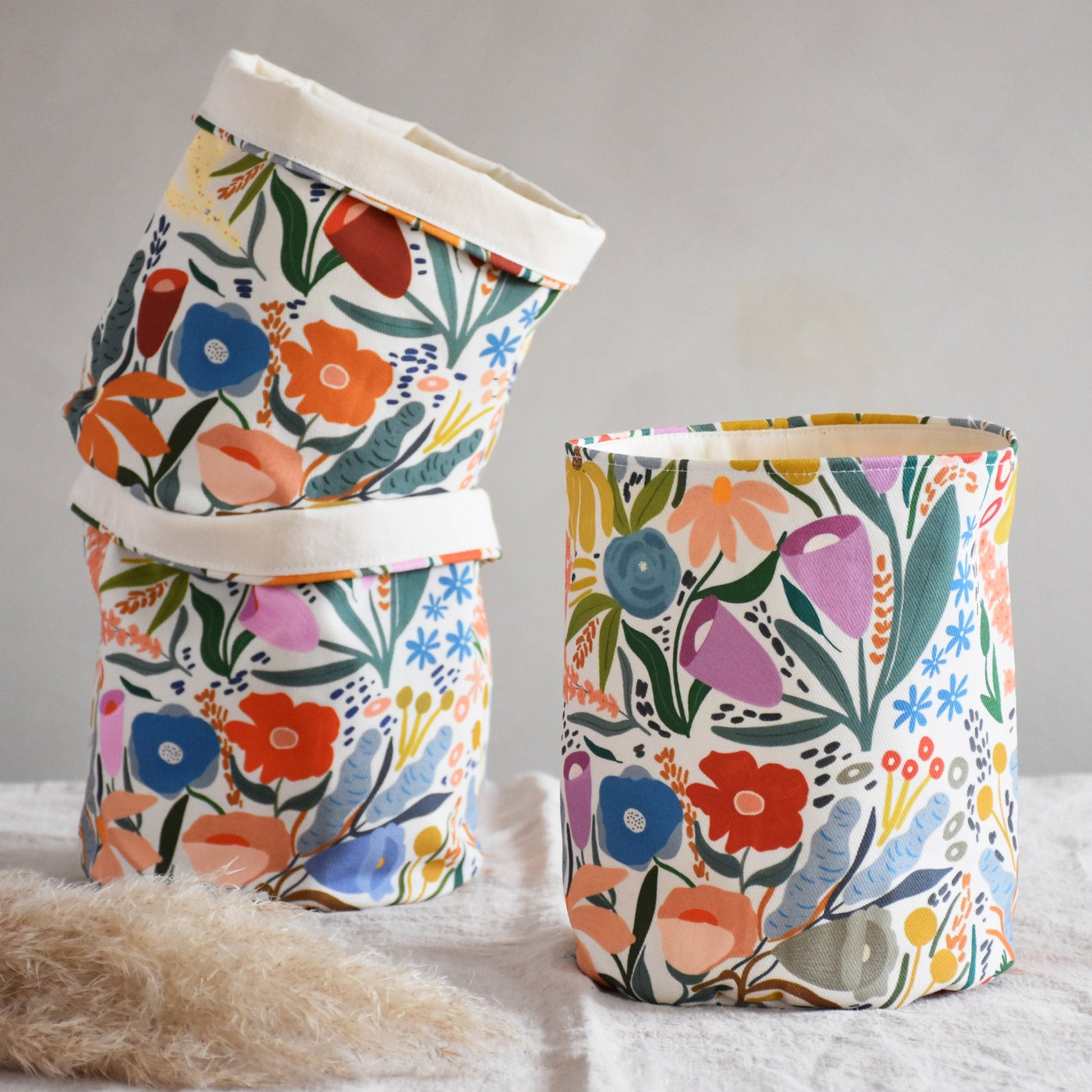 Fabric storage baskets are great for storing and organizing small items in your home, office or studio. Use them as planters, for storing fruit, bread, cookies, toys, pencils or anything that comes to your mind.