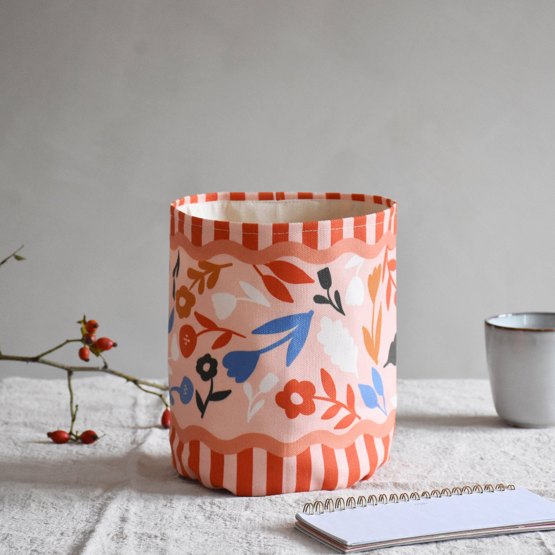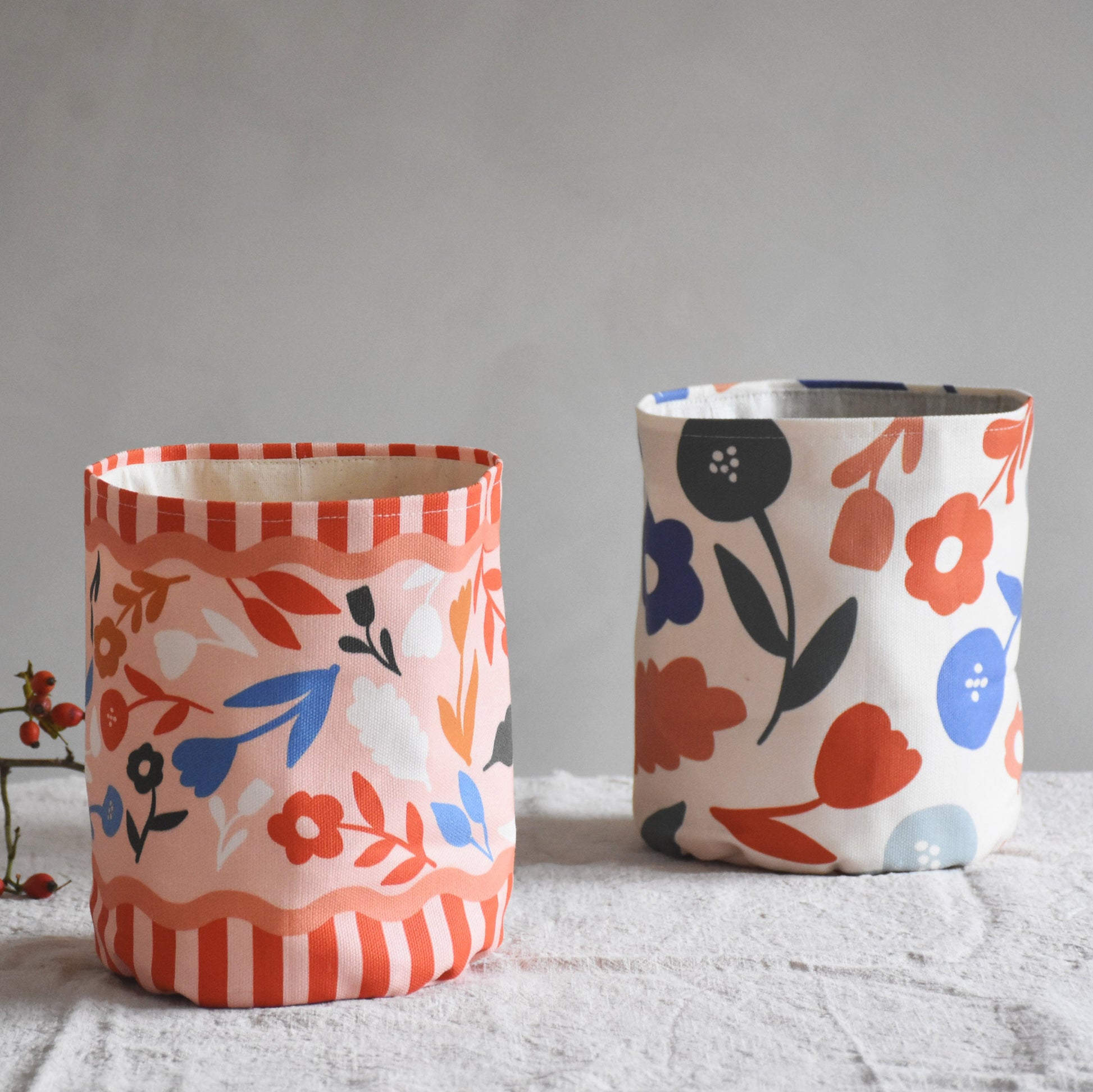 Fabric storage baskets are great for storing and organizing small items in your home, office or studio. Use them as planters, for storing fruit, bread, cookies, toys, pencils or anything that comes to your mind.